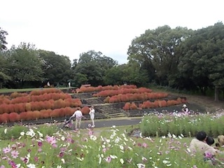 鶴見緑地組はあいにくの天候で途中、小雨にあいましたが満開のコスモスと色づいた