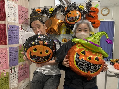 今回は鶴見緑地公園へコスモスを見に行くグループとハロウィンパーティで仮装や