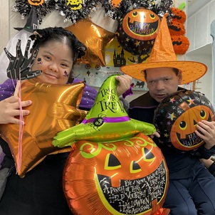 ハロウィン組は自身の手形を取ったマジックハンドの制作の後、仮装をして写真撮影