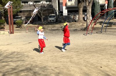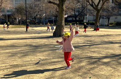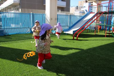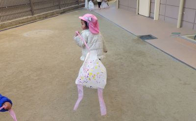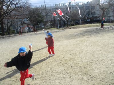 うさぎ組・りす組も屋上や園庭で凧あげです☺