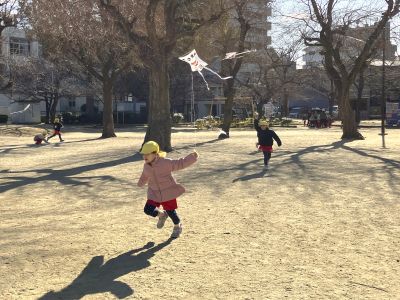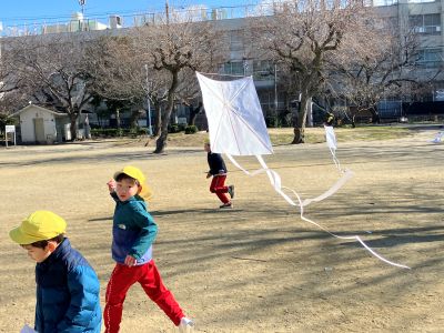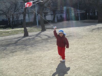 今日は凧あげに挑戦です。風が少し強くて凧あげ日和☺