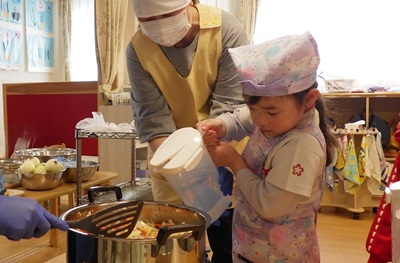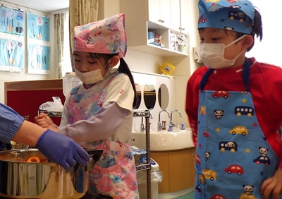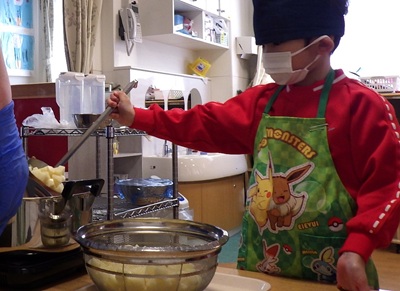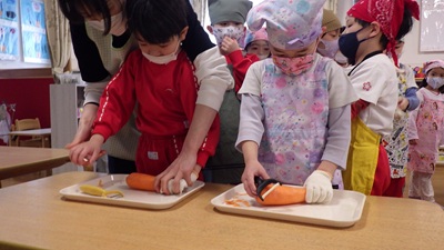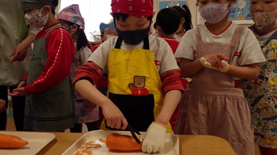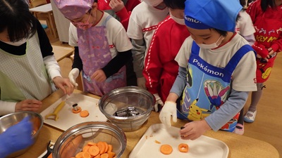 ぞう組は、皮むき・カット・型抜きなど、力を合わせてがんばってくれました!