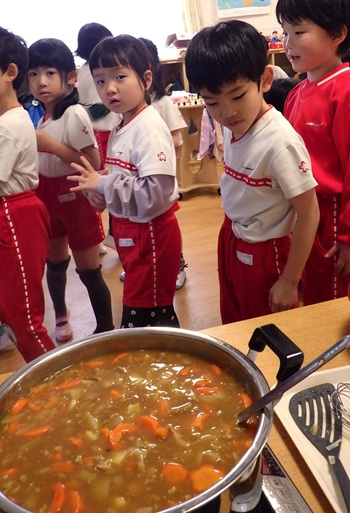 おなかペコペコのぞう組さん。カレーの匂いに大喜び!