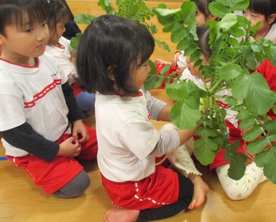 > 施設紹介 > 幼保連携型認定こども園 内代まつのはな保稚園 > 保育園通信 > 大根収穫