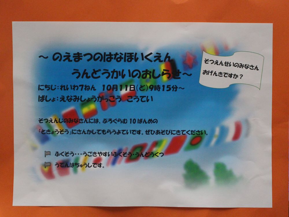 > 施設紹介 > 野江まつのはな保稚園 > 保育園通信 > 卒園児の皆さまへ ~運動会のお知らせ~
