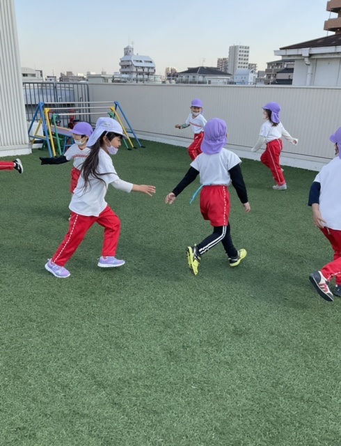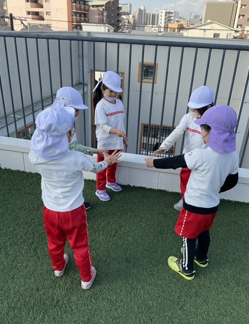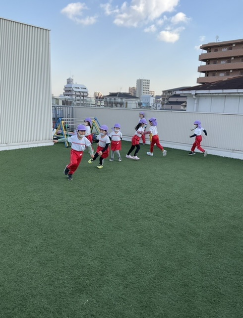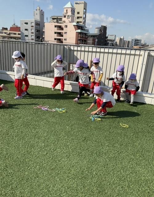 屋上へ行き、しっぽ取りゲームをしました✨