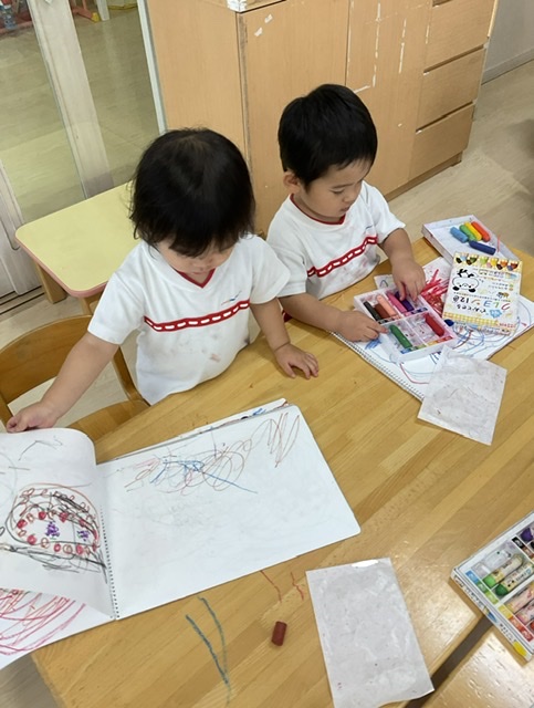 自分でお絵描きをするか粘土をするか選んだ子どもたち!