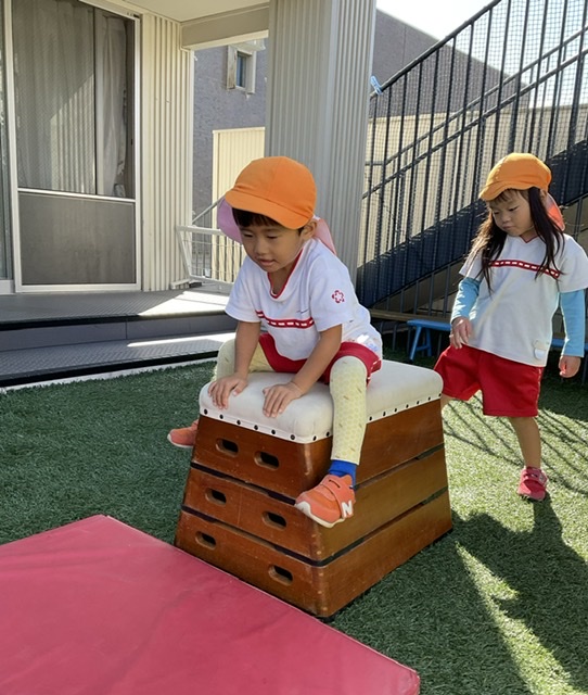 また跳び箱を飛び越すという経験も遊びの中で取り入れて行きたいです♬