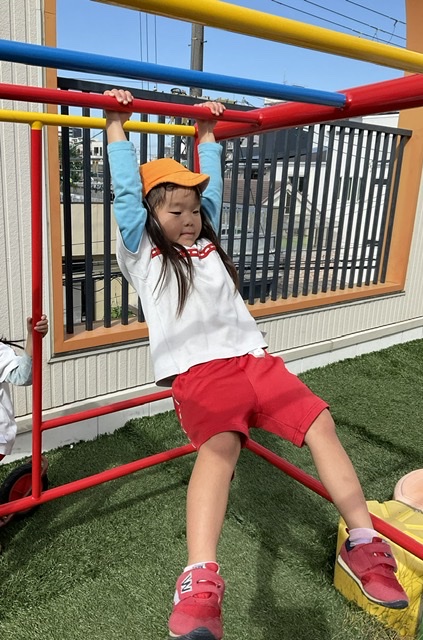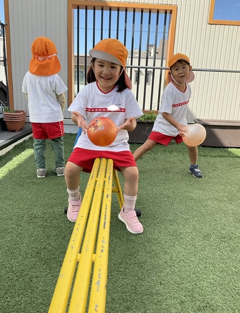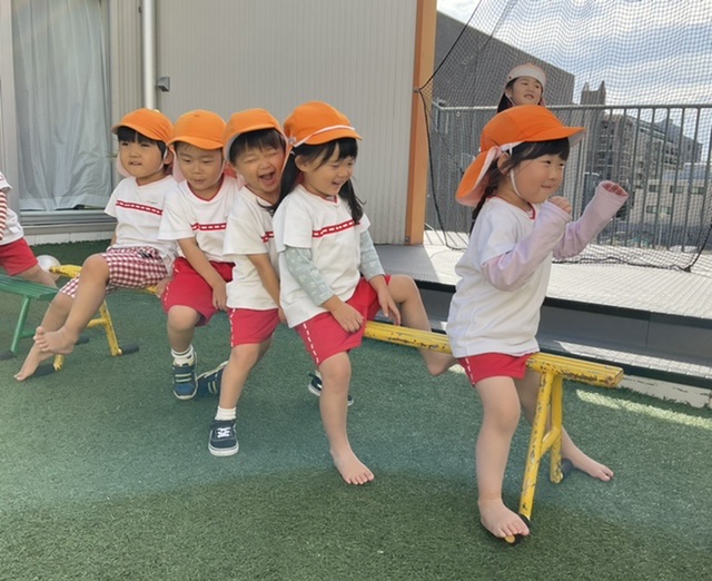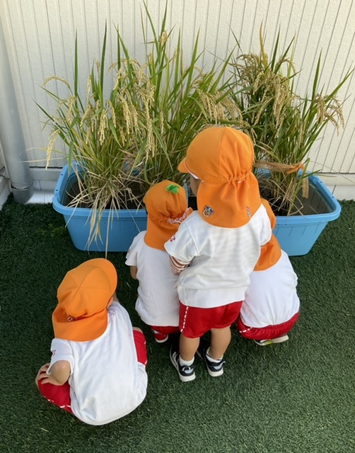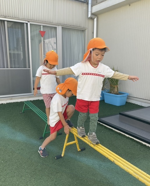 3階テラスでは、平均台、雲梯、かけっこ、バスごっこ、稲の観察など…🌾