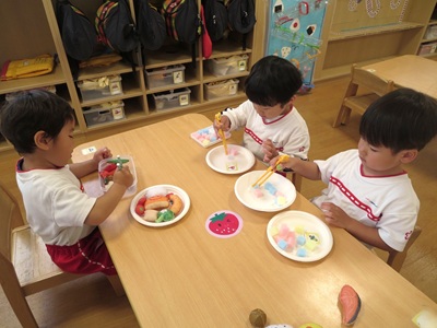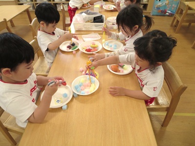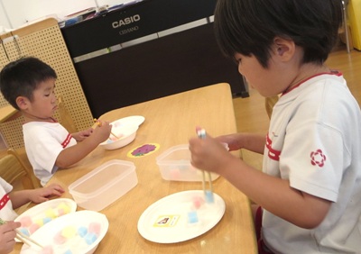 今日は、お箸の練習をしました♪