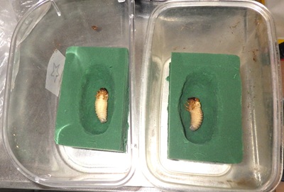 上手に羽化できるように、手作りの蛹室に寝かせましょう(^^)/