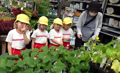 グループごとに育てたい夏野菜を決めて、みんなで買いに行きました♪