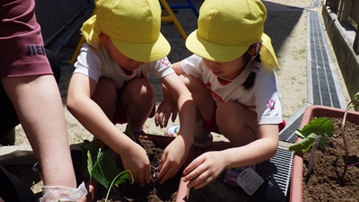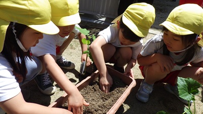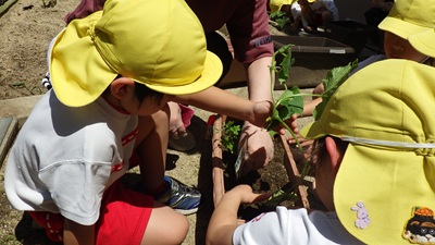 ぞう組の子どもたちが、きりん組の時から育てて
