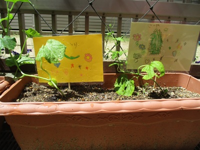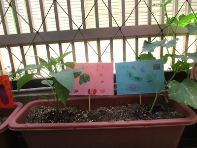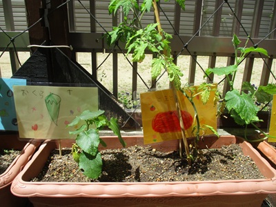 グループごとにお水をあげて、夏野菜の名札も作りました(^^)/