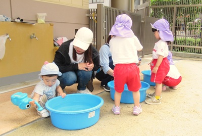 ご家族で参加してくださり、うさぎ組の子どもたちも一緒に水遊びを楽しみました♪