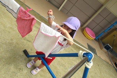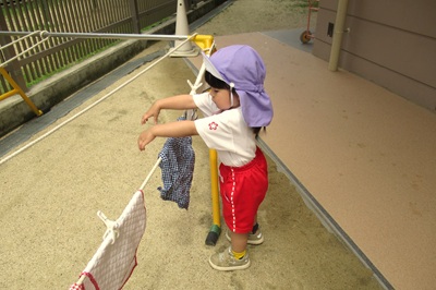 梅雨の晴れ間にお洗濯!ままごとのおふとんを洗いました。