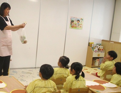 栄養士の先生に野菜の切り口を見せてもらって、何の野菜か当てっこしました🥕