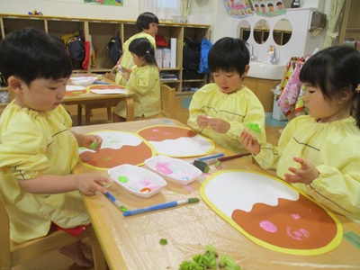 > 施設紹介 > 幼保連携型認定こども園 内代まつのはな保稚園 > 保育園通信 > きりん組🦒野菜スタンプ