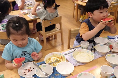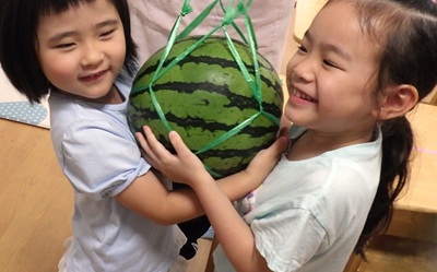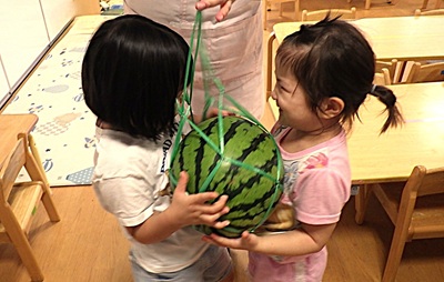 甘いスイカは『ボンボン!』と音が響くよ!