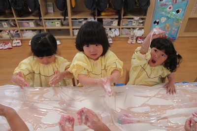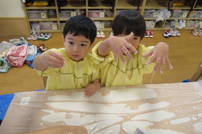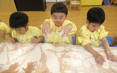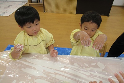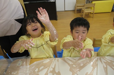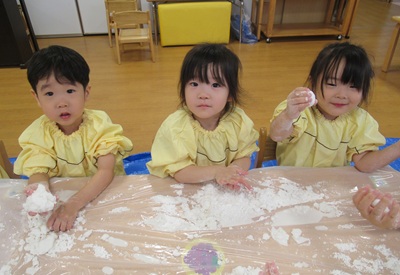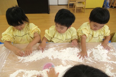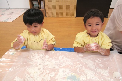 とっても不思議な片栗粉粘土に、みんな夢中でした!