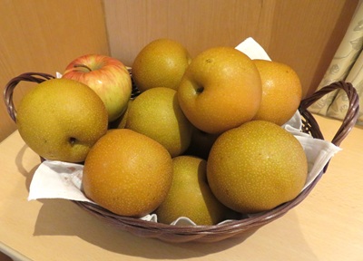 梨の皮は食べれるけど、硬いのでむいて食べることが多いよ。