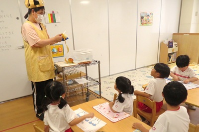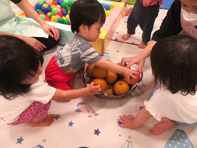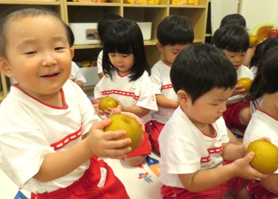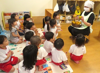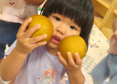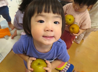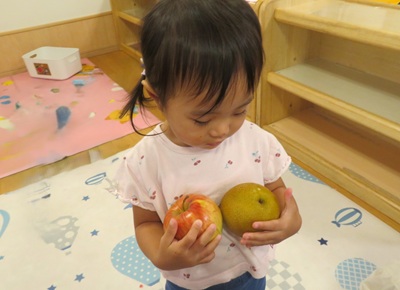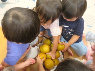 栄養士の先生と、りんごと梨をくらべてみました(^^)/