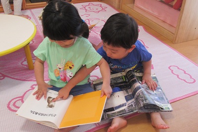 お部屋では、好きな絵本やおもちゃを選んで集中して遊ぶ姿がみられました☆