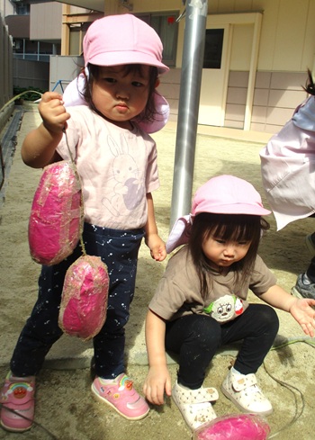 うさぎ組に続いて、りす組さんもいもほりごっこに挑戦です!
