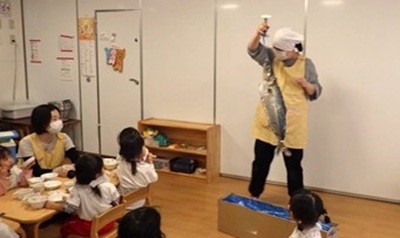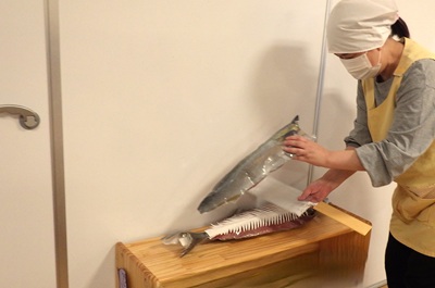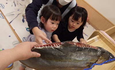 栄養士さんによる、ぶり釣りと三枚おろしを実演(⁉)です!