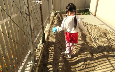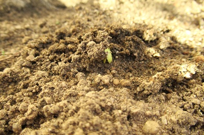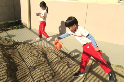 種をまいて、1週間。芽が出ているのを見つけて、大喜びのお当番さんでした(^^)/
