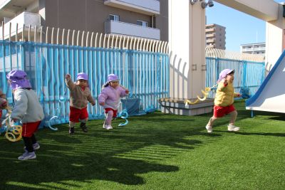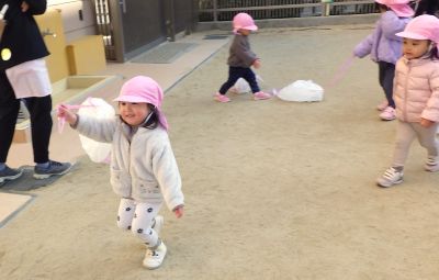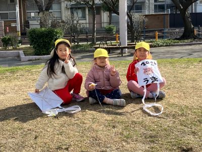 うさぎ組・りす組も屋上や園庭で凧あげです☺