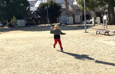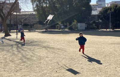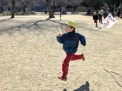 今日は凧あげに挑戦です。風が少し強くて凧あげ日和☺