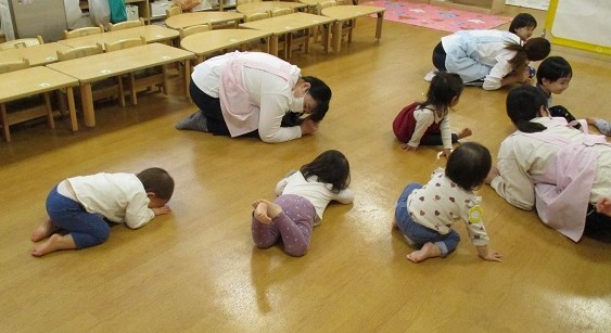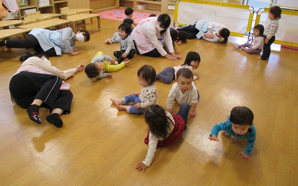 歌に合わせてダンゴムシになりきり、楽しんでいました♪♪♪