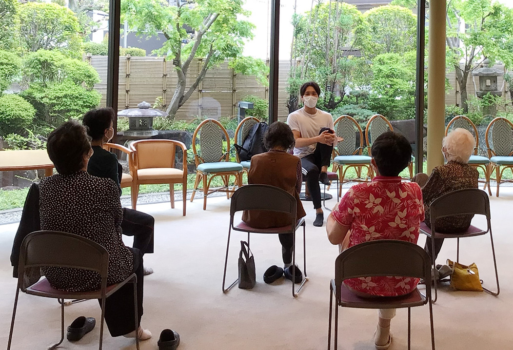 地域の中学校の吹奏楽部やコーラス部、演劇部、ボランティア部の方々が来て下さり、演奏や演劇を披露していただいています。みんなで一緒に歌を歌ったり体を動かしたり、またゲームなどのレクレーションもして共に楽しまれています。
