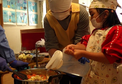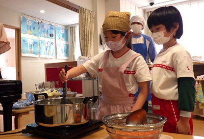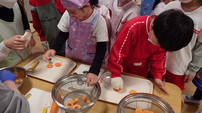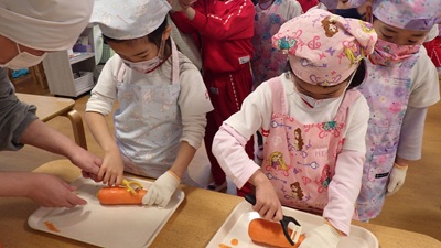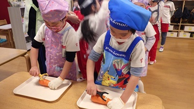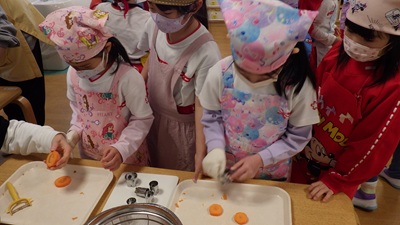 ぞう組は、皮むき・カット・型抜きなど、力を合わせてがんばってくれました!