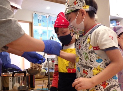 みんなで一生懸命作ったカレーライスはいつもよりおいしくて、たくさんおかわりしていましたよ!