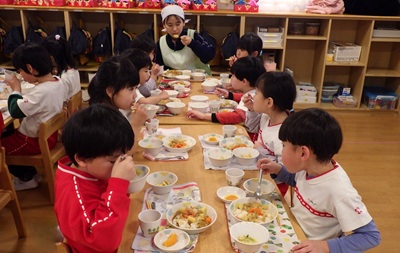 おなかペコペコのぞう組さん。カレーの匂いに大喜び!